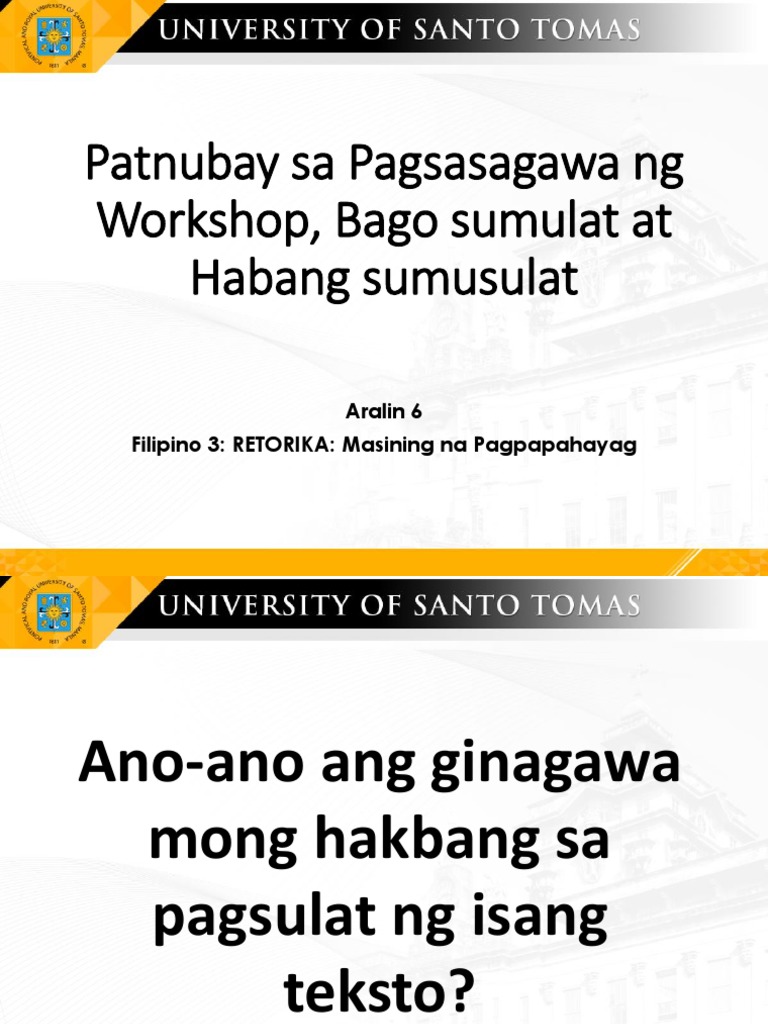 Fil 3 Aralin 6 Patnubay Sa Pagsasagawa Ng Workshop Bago Sumulat At Habang Sumusulat Pdf