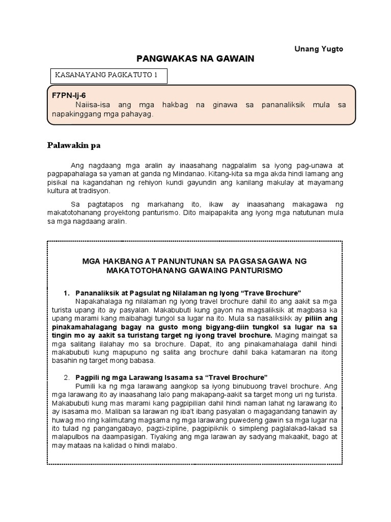 Mga Hakbang Sa Paggawa Ng Proyektong Panturismo O Travel Brochure