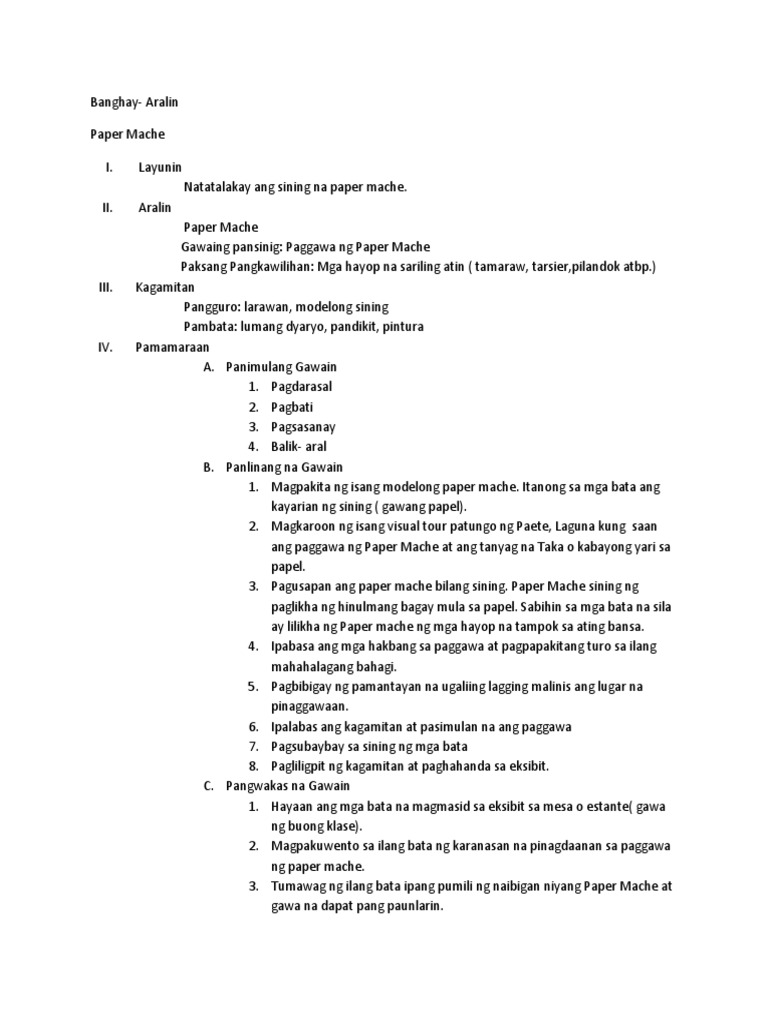 Banghay Aralin Sa Sining 6 Paper Mache Pdf