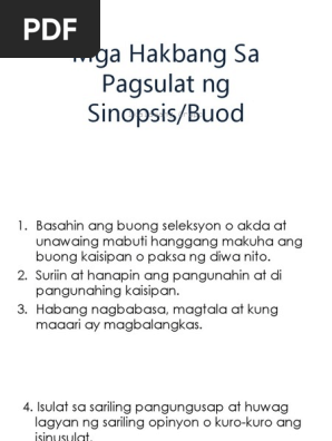 Mga Hakbang Sa Pagsulat Ng Sinopsis Pdf
